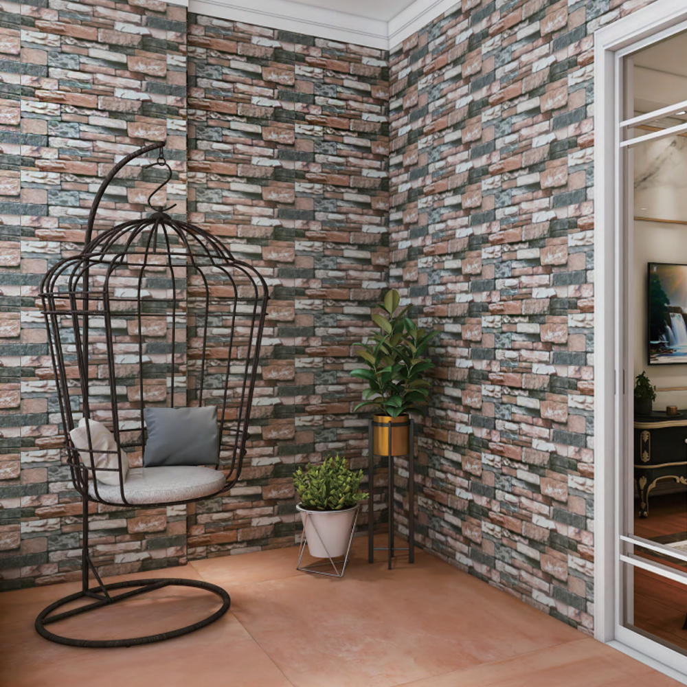 Este modelo destaca por su rica combinación de tonos café claro, terracota, beige piedra y matices gris oscuro, creando un contraste natural que aporta profundidad y dinamismo a cualquier superficie. La variación de colores entre cada pieza reproduce el aspecto real de la piedra natural, brindando un estilo rústico elegante ideal para proyectos arquitectónicos que buscan una estética cálida y natural.